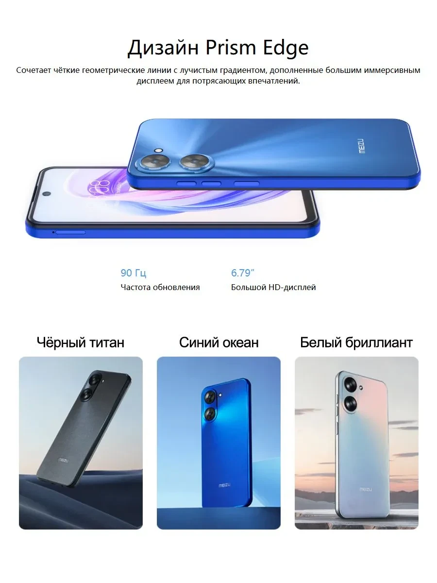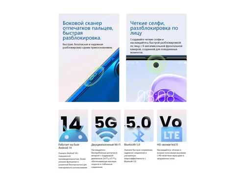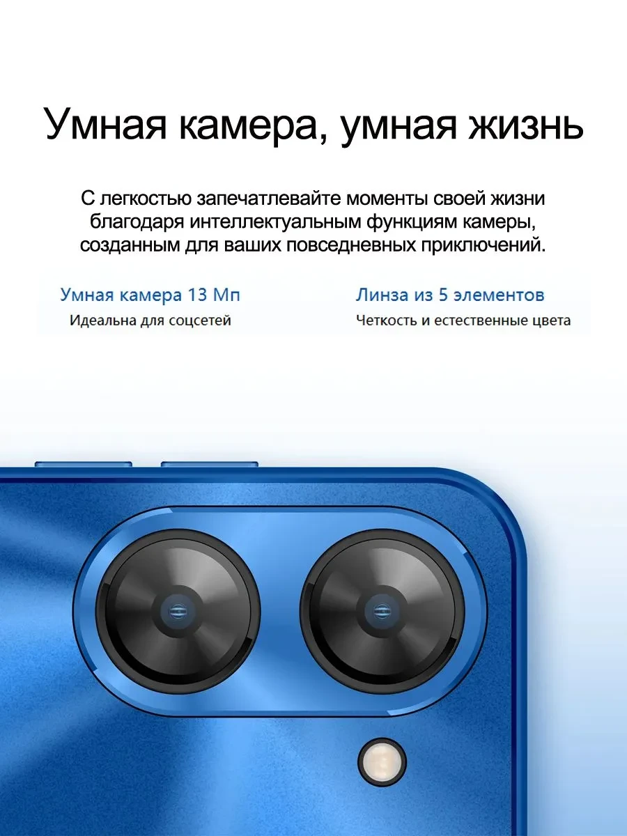 Бюджетный смартфон с большим 6,79″ экраном, 4900 мА·ч батареей и стабильной работой для ежедневных задач. Подходит для звонков, соцсетей, видео и лёгких приложений.
