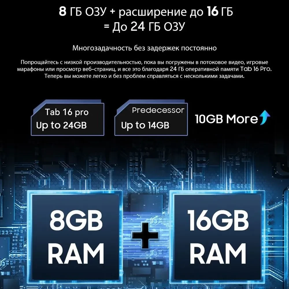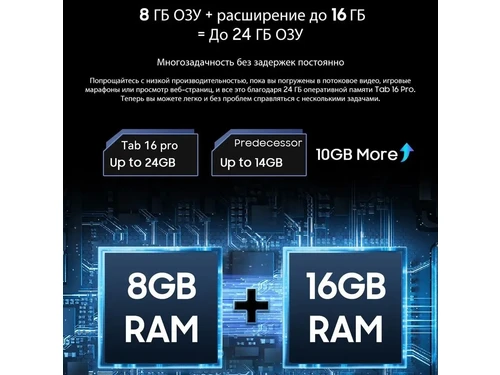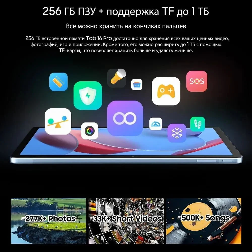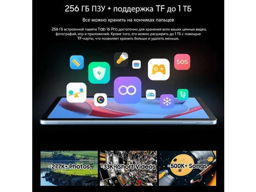 Планшет Blackview Tab 16 Pro 256 ГБ выполнен из металла. Он оборудован IPS экраном 11 дюймов с частотой обновления 60 Гц. Устройство имеет 8 ГБ оперативной и 256 ГБ встроенной памяти. Основная двойная камера 13+2 Мп оснащена автофокусировкой. Емкость аккумулятора 7700 мА*ч позволяет просматривать видео до 5 часов.